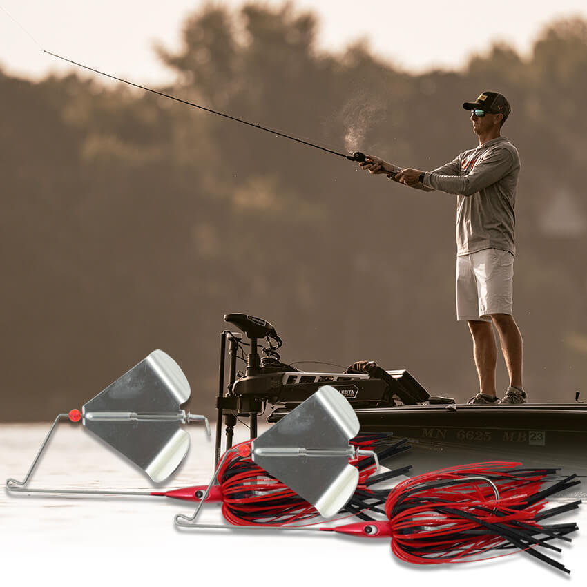 Built to trigger explosive topwater strikes, the Buzzard Buzzer features a tangle-resistant “R” bend, premium hook, lively Super-Silicone skirt, and a hard-hitting aluminum blade that clacks, sputters, and squeals across the surface.