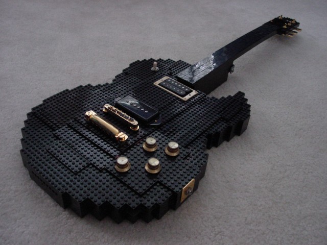 If you prefer realism though, there's no beating Gene Simmons' classic axe guitar. These signed collector items fetch quite a sum these days because less than 500 are said to be in existence. Images via Gizmodo and Ed Roman Guitars How Many Ways Can You "Play" A Guitar?On the complete opposite end of the cool spectrum lie these guitars that look like they would be bigger amongst the Devo crowd than the Slash fans. Whether you prefer Sega or Nintendo is a matter of personal preference, but both of these geek guitars are pretty gosh-darn great. Images via Kotaku and Cool Buzz More Geektastic GuitarsWhen it comes to geeky guitars though, videogame consoles are by no means the end-all-be-all of this specific genre. In fact, both this steampunk guitar and this Lego guitar are sure to strike a chord with any futuristic voyagers. Images via BoingBoing and Geektastic The Not So Tiny Little TeenarIf those guitars aren't outlandish enough for you, then maybe the Teenar girl guitar is enough for you. Inventor Lou Reimuller created this creepy monstrosity that can be played with only a tiny tilt. Image by Lou Reimuller Beautifully Backwards BassThis two string bass is possibly even more visually striking than the creepy girl guitar only because it's the exact opposite of what you would expect to see in a bass. It's played by Stig Pederson in the Danish band D-A-D. Image by Guitarz Dressing Up Your Inner Rocker