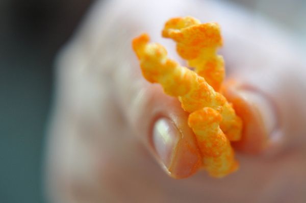 Cheetos--they're nature's perfect food. Still, people try to improve nature's design and have succeeded, advancing the culinary wisdom of humanity. Here are 12 unconventional ways to cook and serve Cheetos. 1. Deep fried Cheetos! Tom Pizzica of the Park Slope Chip Shop in Brooklyn deep fries everything, including these Cheetos. 2. Marshmallow treats...flavored with Cheetos! Becky McKay made Rice Krispie treats, but replaced the Rice Krispies with Cheetos. 3. Cheetos donuts! To mark National Donut Day (an important religious holiday), Donut Prince in Burbank, California made donuts with dulce de leche and Flamin' Hot Cheetos. That Cheetos flavor, by the way, has sent people to the hospital. 4. Caramel-coated Cheetos are popularly known as "coyote droppings." I think you can see why. Instructables member Puero made these with corn syrup. Just don't eat one offered to you by a practical joker. 5. Cheetos macarons! The Macaron Parlour on Manhattan is dedicated to that sweet cookie. They've got a vast number of varieties, including one that's flavored with Cheetos. 6. Cheetos ice cream! Although we all use Cheetos as a garnish for ice cream sundaes, they can also go into the ice cream itself! Becky McKay chopped Cheetos and chocolate into her ice cream recipe! 7. Chocolate-covered Cheetos! But Ms. McKay didn't stop there! She also melted chocolate baking bark--that's a sheet of chocolate that breaks easily for baking use. Then she dipped Cheetos in to make the perfect breakfast meal. 8. Chocolate chip Cheetos cookies! Christina_S added whole Cheetos to her favorite double chocolate chip cookie recipe and served them with ice cream. 9. Hot Cheetos-crusted fried mozzarella sticks! Zach Wilkins and Jason Medina made a Tabasco sauce egg wash and used it to bond crushed Hot Cheetos to mozarella sticks. Then they deep fried these delicious little heart attacks. 10. Cheetos grilled cheese sandwiches! Michelle made this classy-looking sandwich with homemade sourdough semolina bread and provolone cheese. 11. Macaroni and cheese Cheetos pie! Kansas City BBQ Source posted a recipe for mac-and-cheese pie that uses Cheetos. Now all you need to add is chocolate syrup. 12. Cheetos quiche! Cheetos are the mark of the refined gourmand. This vegetarian quiche from Pacificlectic uses gruyere cheese and chanterelle--a fancy-shmancy fungus. | ||||||||