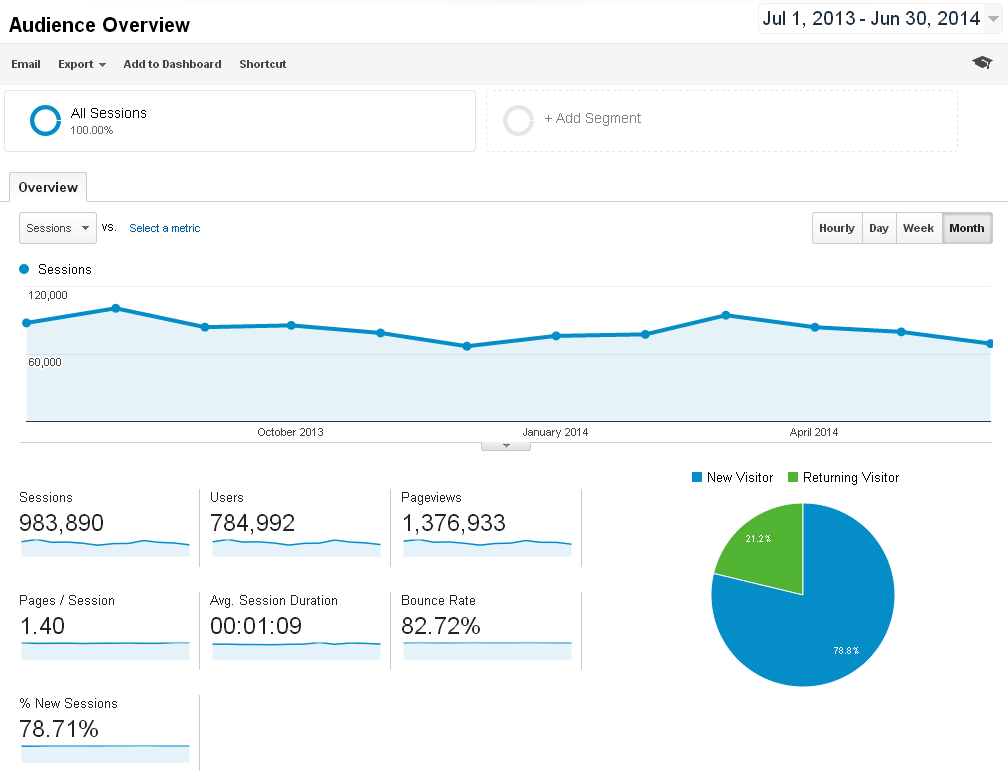 See the one year of blogging, two years of blogging, three years of blogging, four years of blogging, five years of blogging, and six years of blogging for the previous years' statistics. Let's start this year's stats with traffic: This year: 784,992 uniques. 983,890 visits. 1,376,933 page views. I haven't been blogging much at all and that explains the negative delta. I've about 200 articles in drafts so stay tuned for some quality articles soon! Feedburner stats: At 16,500 rss subscribers this year. Last year 16,343. Delta 157. subscribe. Feedburner is a dead service now, so the rss subscriber count has become a meaningless, random number that changes daily. It fluctuates around 16,500 subscribers. Github stats: At 1700 followers this year. Last year 1400. Delta +300. follow me. Twitter stats: At 4130 followers this year. Last year 3774. Delta +356. follow me. Total articles written: 20. Top 10 articles: