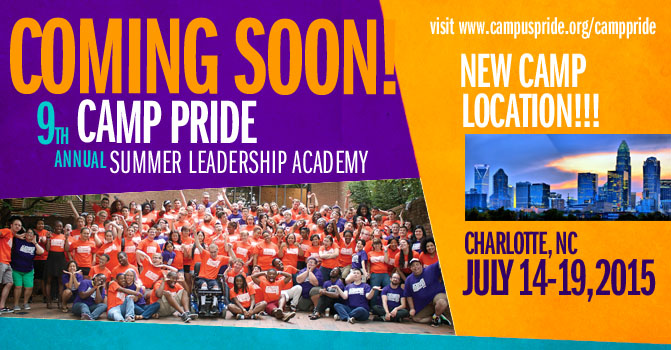 |  Camp Pride 2015 & Advisor Bootcamp Registration Opens February 1, 2015 Campus Pride's 9th annual Camp Pride LGBTQ Leadership Academy and 5th annual LGBTQ Professional Academy for Advisors will be held in Charlotte, NC from July 14-19, 2015.