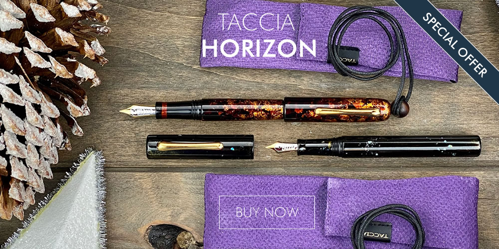 Discounted today, the Taccia Horizon Limited Edition fountain pens are hand created by artists using painstaking hand-lacquering Urushi techniques. As coats are applied over weeks, buffed and then re-applied the final form is gradually achieved and then signed by the artist.