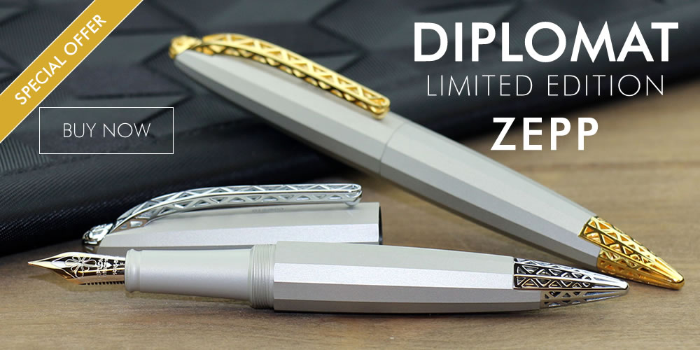 Discounted today only! The Diplomat ZEPP Limited Edition fountain pen design pulls inspiration from metallic architecture while instilling each limited edition pen with the priceless know how of Diplomat's extensive experience as a leader in the pen industry (almost a century now).