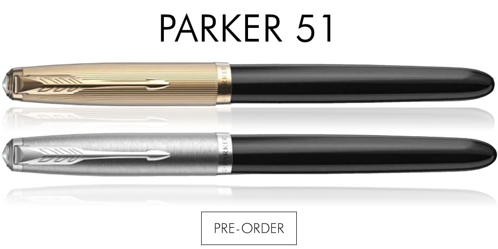 Available in either stainless steel or 18k gold, the Parker 51 fountain pen's unique, hooded fountain pen nib delivers a reliable, personal, and beautiful writing experience. A coveted, sophisticated gift, Parker 51 fountain pens are packaged in premium Parker gift boxes and include a black Quink ink cartridge.