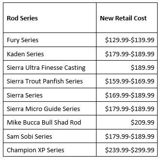 Rod Price Increase effective 9/1/21 Effective September 1, 2021, there will be a $10 retail price increase on the Dobyns Rods Series listed here.