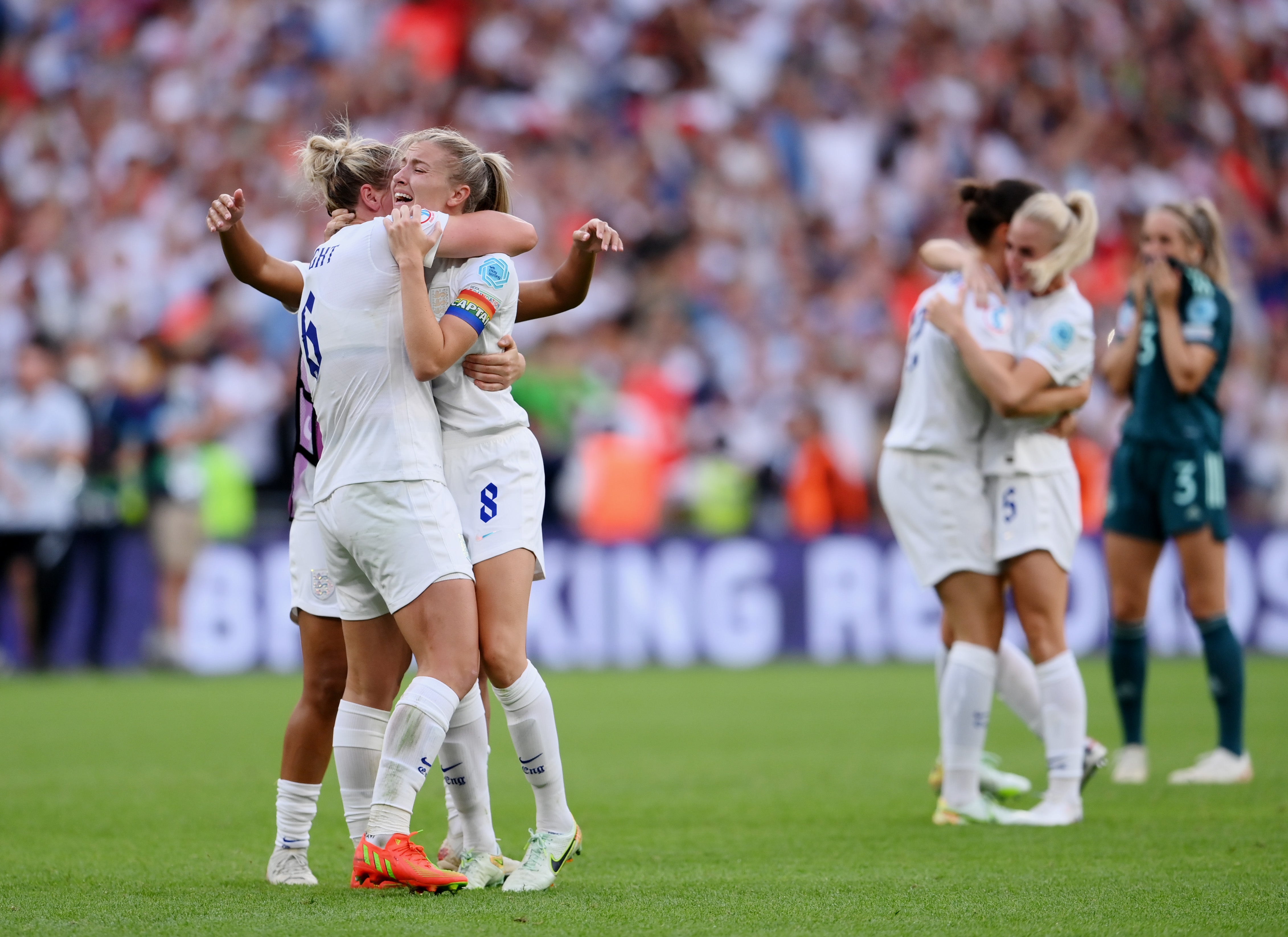 England won Euro 2022 in dramatic fashion at a packed Wembley as Chloe Kelly netted in the 110th minute to beat Germany 2-1. The Lionesses looked set for victory when Ella Toone's exquisite lob put them ahead on 62 minutes but Germany equalised on 79 minutes through Lina Magull. However, Kelly poked home from close range to give England's women a first major tournament trophy in their history. Read the full story here |