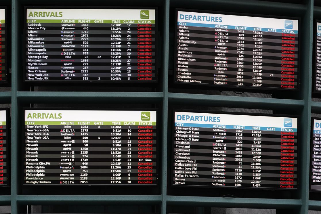 The bottom line: If surges reach their forecasts of 12–18 feet, it would be unprecedented for the region and some of the highest recorded in American history. | | | | | | | 2. Scenes from Ian | | Photo: Chris O'Meara/AP Along Tampa's Bayshore Boulevard, the water had retreated from the seawall about 50 feet in places, like it did when Hurricane Irma streaked east of the region in 2017, Axios Tampa Bay co-author Ben Montgomery reports. Photo: John Raoux/AP Above: Electronic screens filled with red at the Orlando International Airport as the facility started to cease operations ahead of Ian. - ✈️ More than 2,000 flights were canceled today, with another 1,600 canceled tomorrow. Go deeper.
