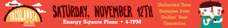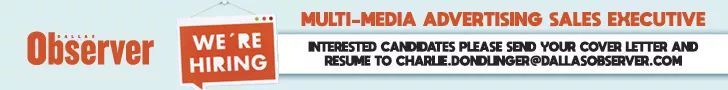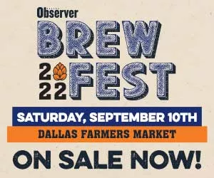 | Change My Info | Unsubscribe To ensure you receive our emails, please add inbox@dallasobserver-insider.com to your address book. You are receiving this advertisement newsletter because you have signed up on our website or at an event, participated in a promotion, or purchased a ticket to an event. Thank you for your patronage. © 2022 Dallas Observer, LP. All rights reserved. 2030 Main Street, Ste. 410 Dallas, TX 75201 |