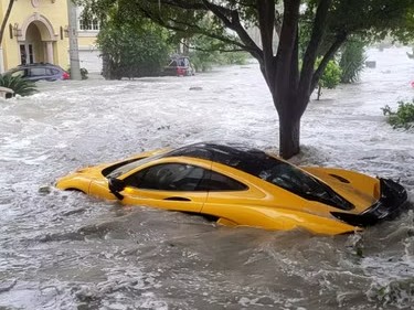 | People have recorded themselves swimming in flooded rooms and wakeboarding down submerged city streets |