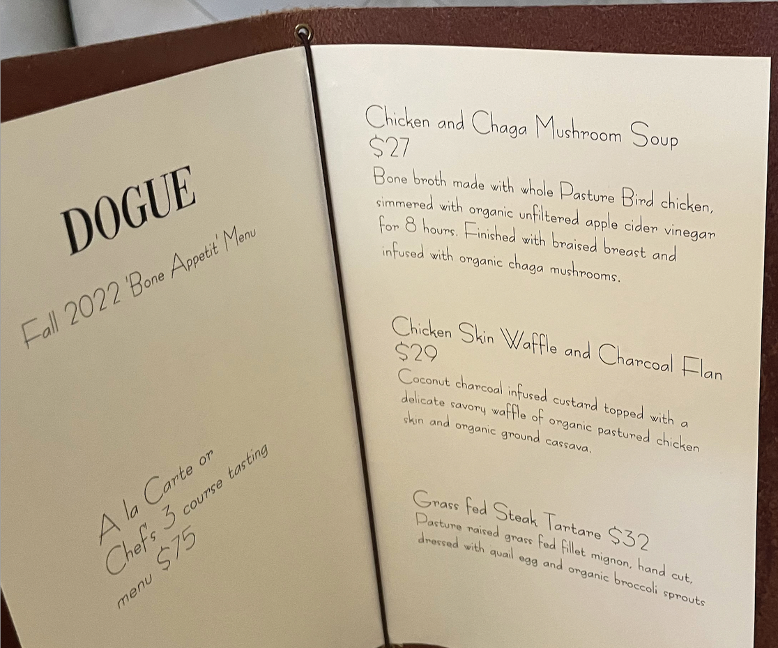 Keep reading. | | | | | | | 6. 🐶 1 pup thing: Doggie restaurant | | Photo: Haven Daley/AP Above: A doggie diner feasts at the new Dogue (rhymes with "vogue") restaurant in San Francisco's Mission District. - A $75, three-course "Bone Appetit" meal features chicken-skin waffles, and filet mignon steak tartare with quail egg.