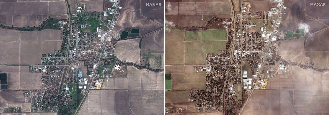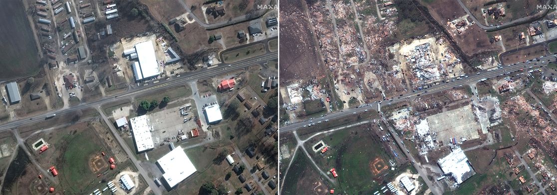 Catch up quick: The plan, proposed by the most right-wing government in Israel's history, would give Netanyahu's coalition more control over the selection of Supreme Court judges and limit its power over parliament. | | | | | | | A message from Walmart | | Creating opportunities for associates to grow their careers | | | | | | | Walmart's investing $1 billion in career-driven training and development. Approximately 75% of Walmart management started as hourly associates. At Walmart, careers might start on the floor, but they never have to end there. Learn more about how at Walmart, the floor is never the ceiling. | | | | | | 4. 🛰️ Satellite eye: Before/after in Mississippi | | Satellite images ©2023 Maxar Technologies Maxar Technologies released high-resolution satellite images showing Rolling Fork, Miss., yesterday — along with companion images from December. - The gut-wrenching side-by-sides show the aftermath of the powerful tornado that hit Friday night, killing 25.