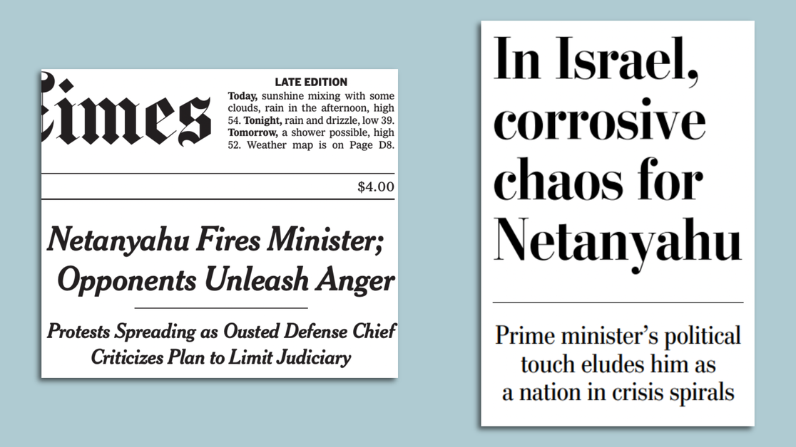 Headlines in today's N.Y. Times, Washington Post State of Play: More than 100,000 Israeli protesters blocked Tel Aviv's main highway last night. - Israel's largest trade union group announced a strike that hits large swaths of the economy.