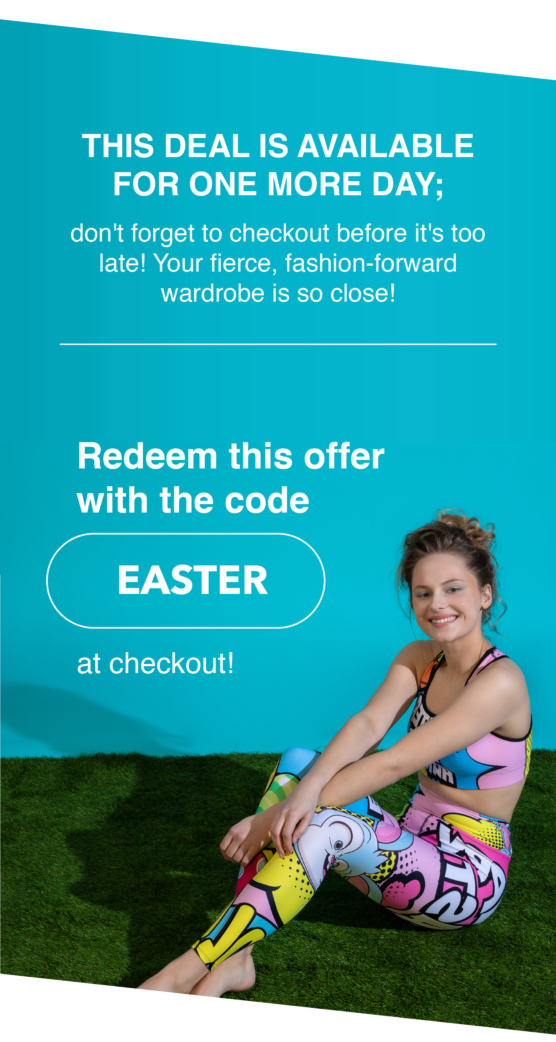 Hey you, Easter is here, and our celebration involves you getting your hands on some unique, stylish apparel! We're offering 40% off orders over $100! | | | | | | It's time to exhibit your fierce side with attractive apparel packed with personality! | | | | | This deal is valid until tomorrow! You'll also receive free shipping on orders over $100! | | | | | Discover your fierce side. | | | | | | |