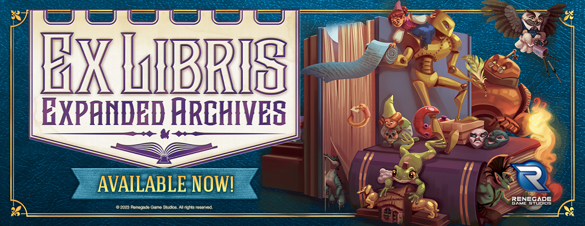 To help out, we've built a master-guide for all kinds of gamers! From Strategy Gamers to Horror Gamers, from Power Rangers fans to My Little Pony fans, we've got something for everyone at Renegade! Check out our extensive 2023 gift guide! | | Ex Libris is AVAILABLE NOW! | | In Ex Libris, you are a collector of rare and valuable books in a thriving fantasy town. The Mayor has just announced a new seat in the Village Council, Grand Librarian. The prestigious and lucrative position will be awarded to the citizen with the most extraordinary library! Unfortunately, several of your book collector colleagues (more like acquaintances, really) are also candidates. | | Features: - Collect & arrange books in a fantasy setting to become the Grand Librarian!