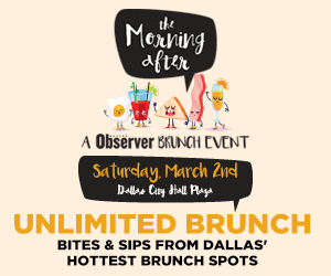 | Change My Info | Unsubscribe To ensure you receive our emails, please add inbox@dallasobserver-insider.com to your address book. You are receiving this advertisement newsletter because you have signed up on our website or at an event, participated in a promotion, or purchased a ticket to an event. Thank you for your patronage. © 2023 Dallas Observer, LP. All rights reserved. 2030 Main Street, Ste. 410 Dallas, TX 75201 |