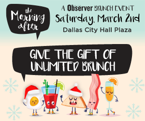 | Change My Info | Unsubscribe To ensure you receive our emails, please add inbox@dallasobserver-insider.com to your address book. You are receiving this advertisement newsletter because you have signed up on our website or at an event, participated in a promotion, or purchased a ticket to an event. Thank you for your patronage. © 2023 Dallas Observer, LP. All rights reserved. 2030 Main Street, Ste. 410 Dallas, TX 75201 |