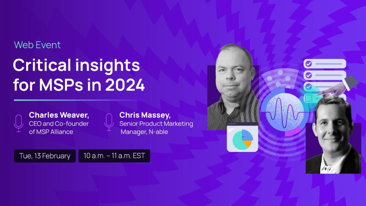 Our web event, Critical Insights for MSPs in 2024, is designed to show you how to navigate the 2024 MSP landscape, find crucial insights, fortify your security posture, and elevate your customer care. Chris Massey, Senior Product Marketing Manager, N-able and Charles Weaver, CEO and Co-founder of MSP Alliance, will cover: