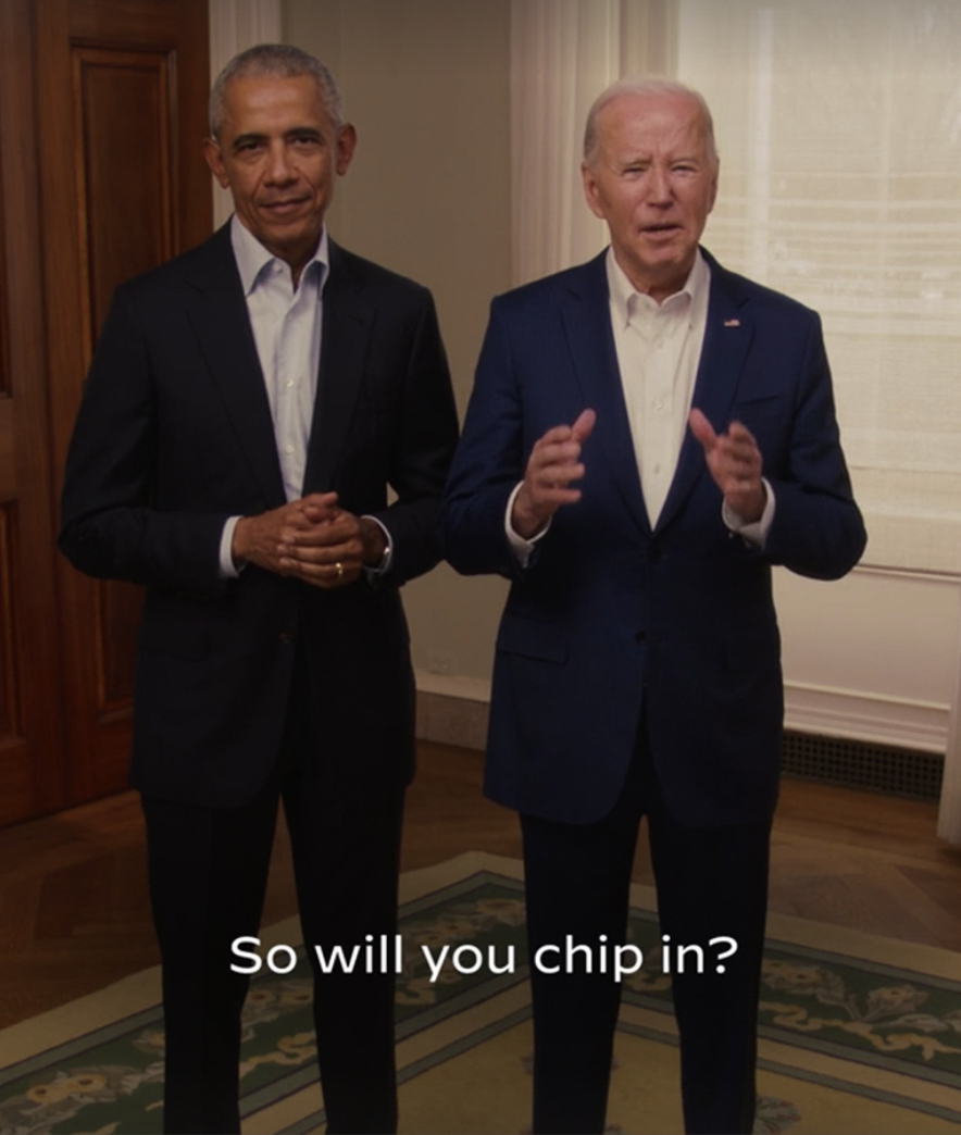 See how Doing gets it Done. | | | | | | 3. Catch me up | | Photo: Biden-Harris campaign - 🗳️ President Biden is tapping former President Obama to help him raise money again, as they appear side by side in digital ads making appeals to small-dollar donors, Axios' Hans Nichols scoops. Biden needs his grassroots base energized — and engaged — to win in November, and polls suggest he has work to do with Black, Latino and young voters in particular. Go deeper.