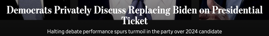Biden’s inner circle turns against him? | | JIM RICKARDS | Dear Reader, On August 19, the Democratic party will take the stage in Chicago and officially nominate their presidential candidate for the 2024 election. But it’s possible their nominee will NOT be Joe Biden. I’m Jim Rickards, former advisor to the White House - and I’ve been saying for the past four years that Biden is not fit to be President. But after his abysmal performance at the first Presidential Debate, his own party is turning against him as well. CNN reports: | | | | | | | And from the Wall Street Journal: | | | | | | | | | |