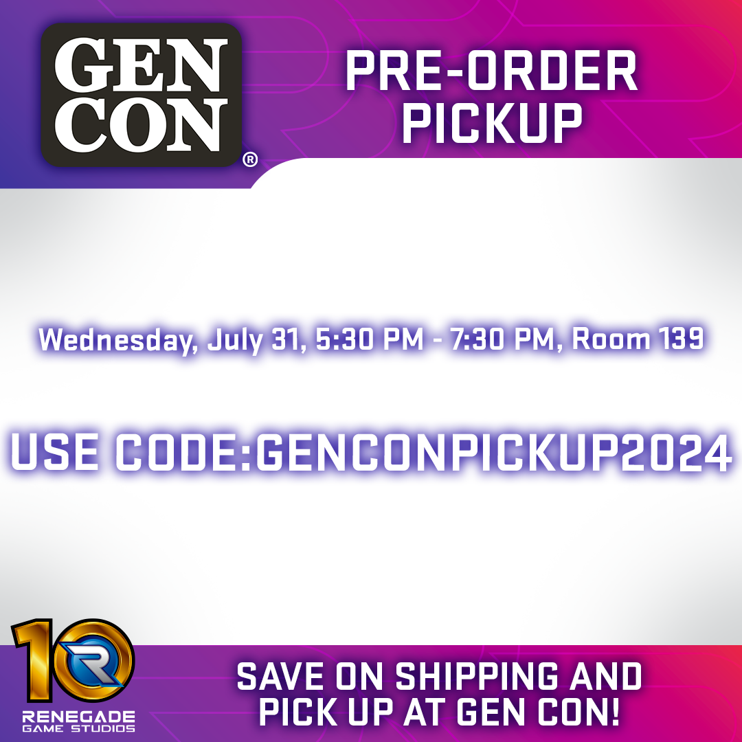| | Pick Up Your Games At Gen Con! | | Skip the shipping with pre-order pickup! We can't wait to see you all during Gen Con! Be sure to place any orders before July 8th! Shop our Gen Con Pre-Order Options HERE! | | The World Diplomacy Championship Coming in 2027! | | Renegade Game Studios and the World Series of Board Gaming (WSBG) are teaming up to host World Diplomacy Championship in Las Vegas. The 2027 tournament will be held in conjunction with the WSBG championship to crown the brightest star in board gaming. Additional event information can be found at the WSBG site and on the Renegade Game Studios official Discord server! | | There's Still Time To Save! | | Celebrate the magic of friendship...and savings! You heard that right! Get 10% off all things My Little Pony for the month of June! Act fast! The sale ends on June 30th at 11:59pm ET! | | | | My Little Pony Roleplaying Game Core Rulebook |