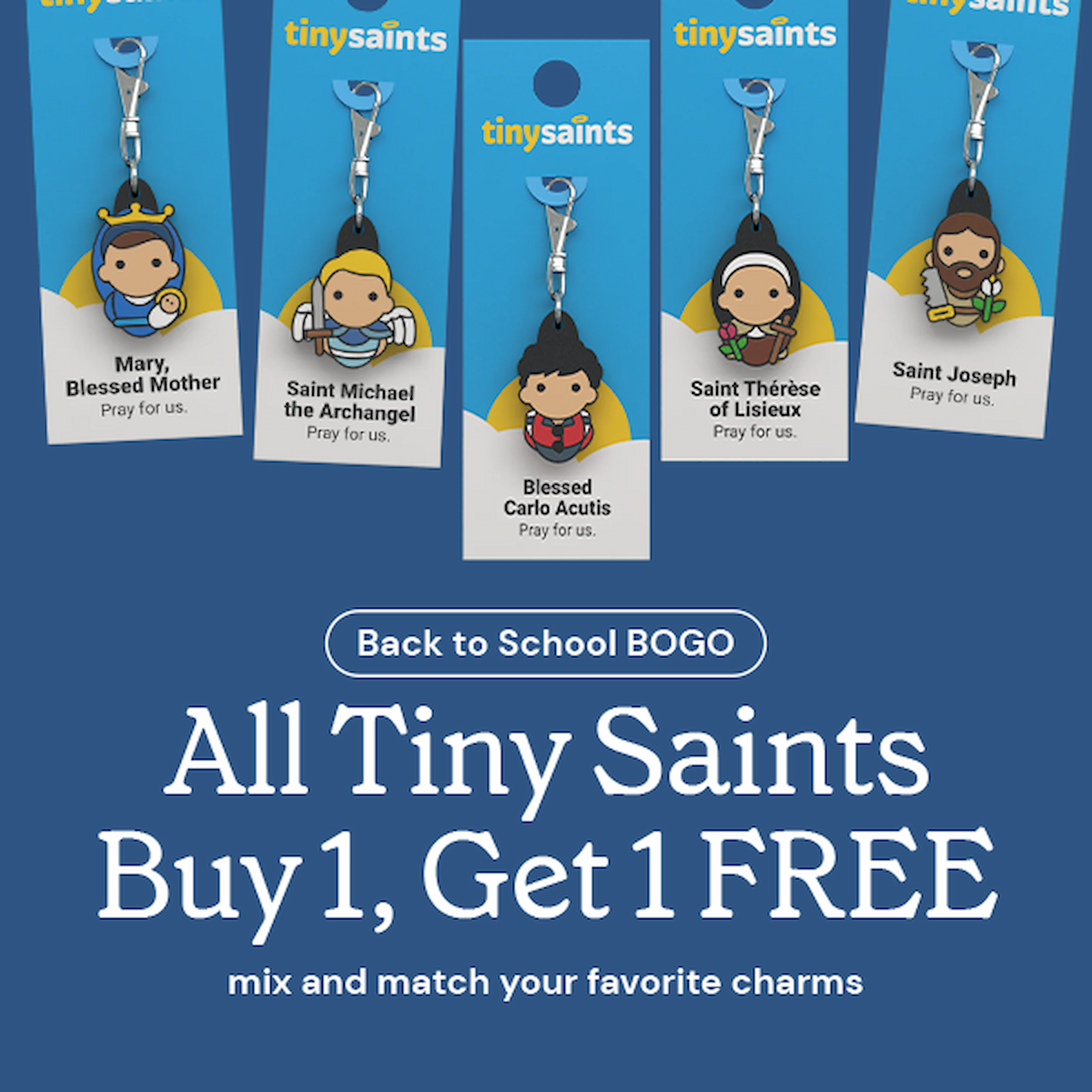 It's our annual BOGO sale, which means that for a few days a year, with every Tiny Saint you order you will get a Tiny Saint of your choice as a free gift from us. If you pick one Tiny Saint, you will get one free. If you pick 100 Tiny Saints, you will get 100 free!