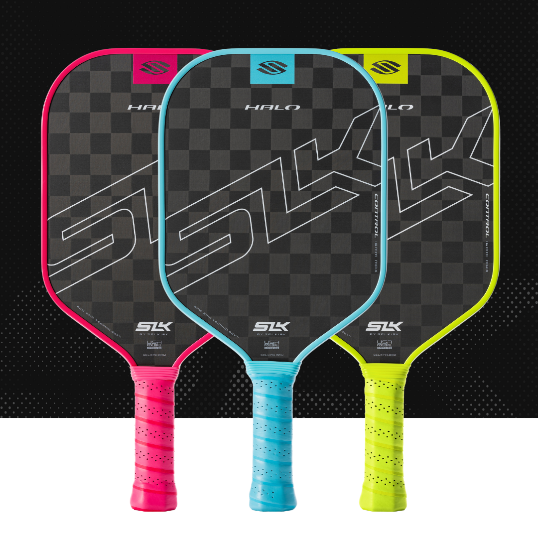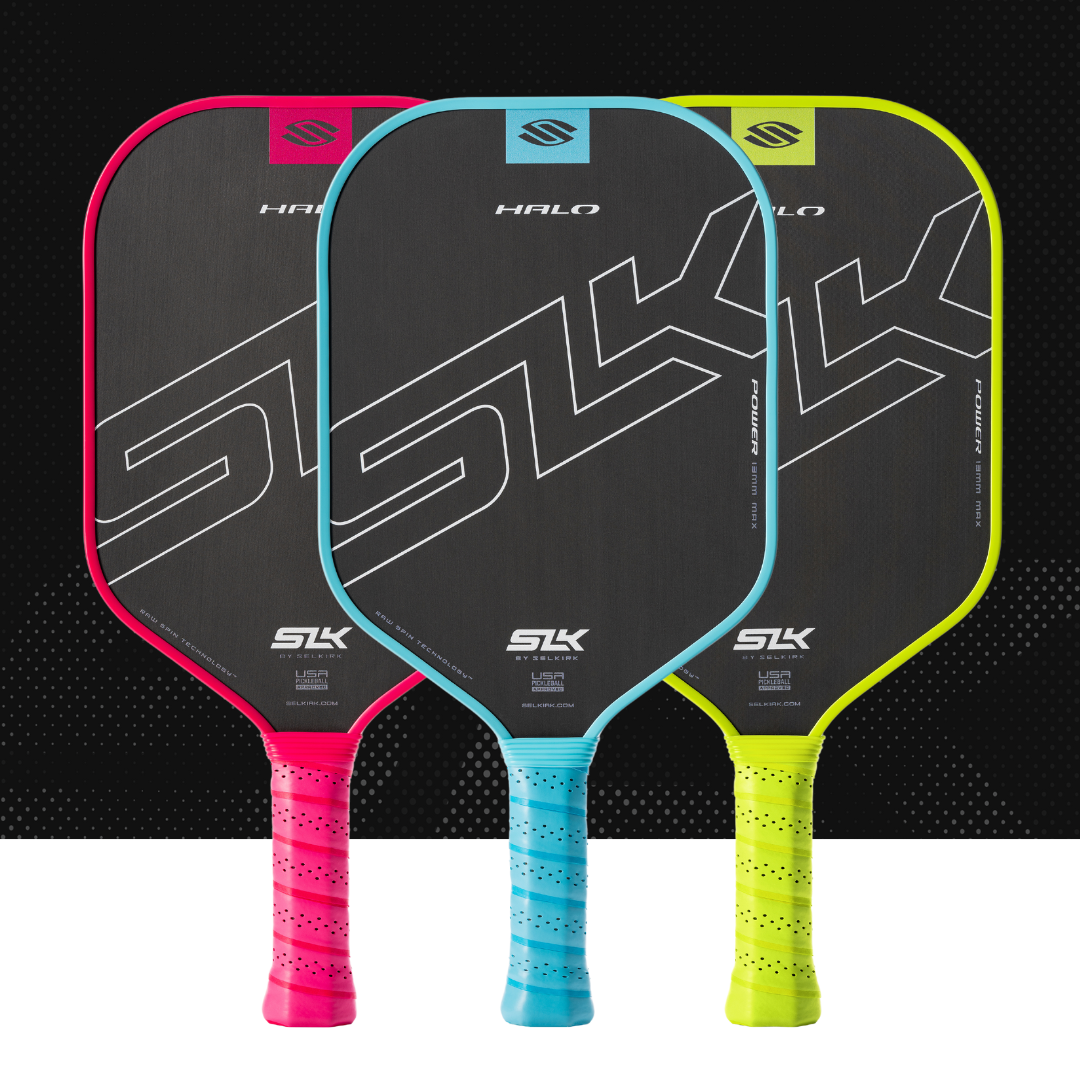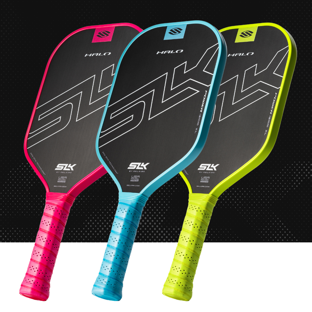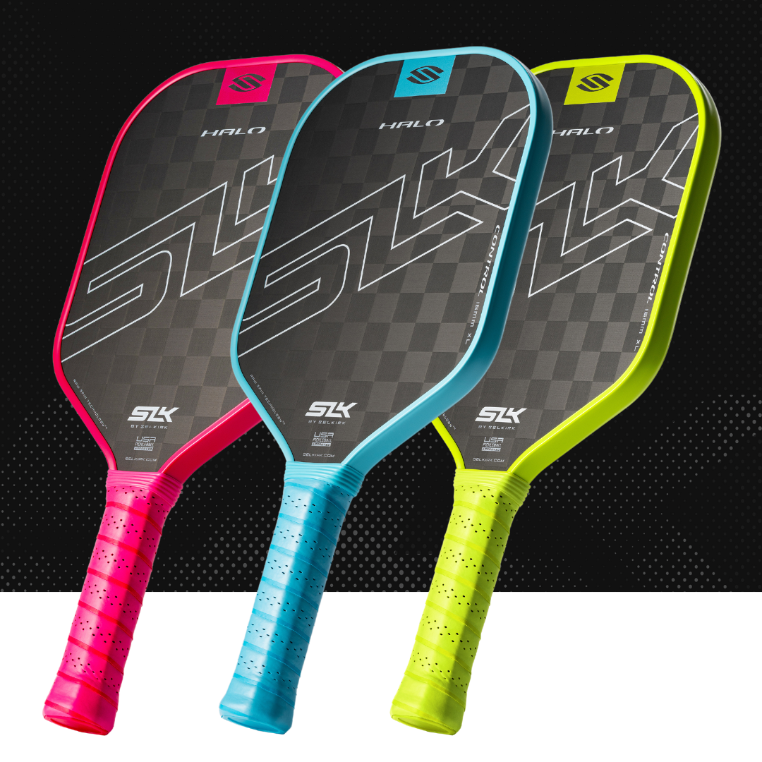 | The SLK HALO series features a pickleball paddle for every style player and cutting-edge technology to evolve your skills. Craft precise shots with the 18k UltraWeave Raw Carbon HALO Control, add extra power to your drives with the T700 Raw Carbon HALO Power, and develop a balanced game of power and control with the patent-pending Carbon + Kevlar LinkWeave HALO Pro. |