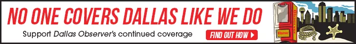 Manage Profile | Unsubscribe To ensure you receive our emails, please add inbox@dallasobserver-insider.com to your address book. You are receiving this advertisement newsletter because you have signed up on our website or at an event, participated in a promotion, or purchased a ticket to an event. Thank you for your patronage. © 2025 Dallas Observer, LP. All rights reserved. 2030 Main Street, Ste. 410 Dallas, TX 75201  |