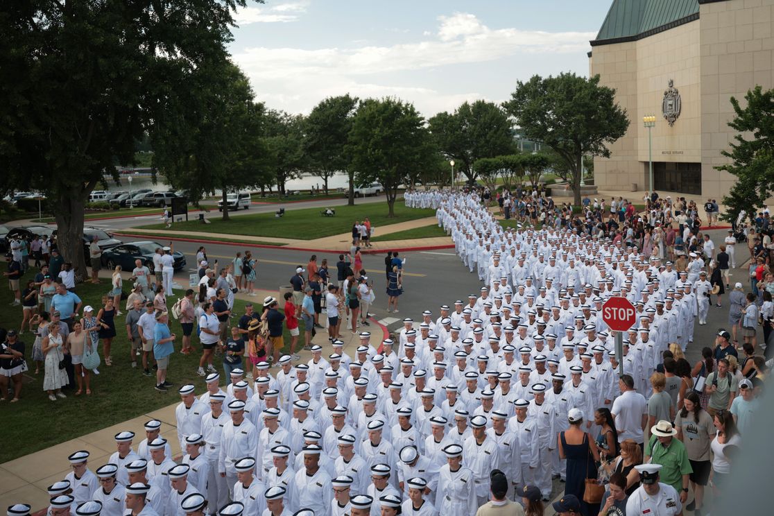 | | | | | | | 4. 📸 1,000 words | | | | Photo: Kayla Bartkowski/Getty Images Incoming freshmen (plebes) marched to their Oath of Office ceremony yesterday during Induction Day at the Naval Academy in Annapolis, Maryland. - Induction Day involves processing, medical exams, uniform fittings, haircuts and learning to salute.