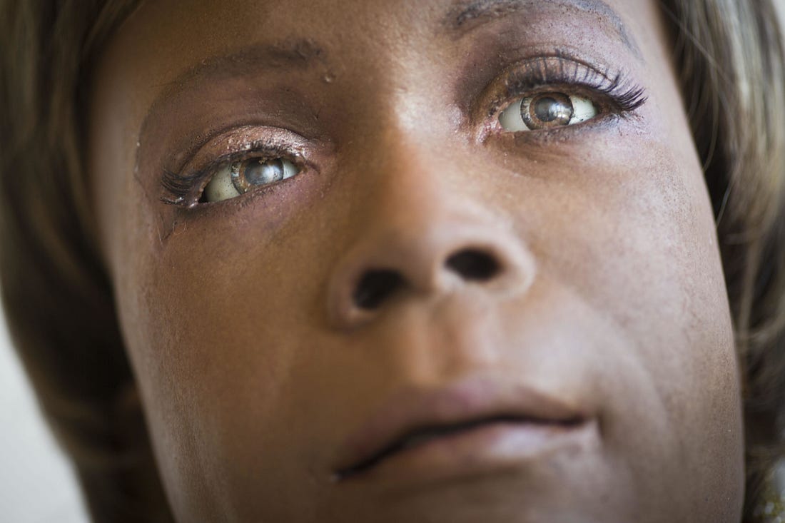 Bina48 represents the end goal of technological immortality, transferring individual consciousness from frail and fallible human bodies into the sturdy frame of a robot. Lead program manager Bruce Duncan described their work as a “multi-decade experiment to see if…it [is] even possible to upload enough salient mental trait information about you, transfer it to a computer, then bring it to life using AI to reanimate” (Bruce Duncan, “Interview with Bruce Duncan and Bina48,” January 24, 2020). At present, Bina48 is a robotic bust, a head and shoulders made of flesh-like rubber covering a frame of metal and plastic. Small motors under her rubber skin help her make facial expressions and turn her head. Cameras in her eyes map the space and recognize faces. The Terasem Foundation researches and supports various technologies and scientific approaches aimed at extending human life, including nanotechnology and “cyber consciousness” (Terasem Mov. Found., n.d.). This includes mindfiles, personal accounts where participants can include “biographical pictures, videos, and documents to a digital archive that will be preserved for generations” (LifeNaut 2024). Participants can create a customized avatar of themselves, which will “interact and respond with your attitudes, values, mannerisms and beliefs” (LifeNaut 2024). In 2020, Duncan told me they had 54,000 users. The project also offers additional, and more speculative, services such as spacecasting the mindfiles, which means broadcasting the information into space. The goal of spacecasting is to “ensure that some aspect of you can survive any catastrophe that might befall earth. We hypothesize that advanced technology that is capable of recovering the Spacecast signal will also most likely be capable of reconstructing yourself from the information in the Spacecast by future generations or even ET’s” [extra-terrestrials] (LifeNaut 2024), a prospect with questionable appeal. Finally, individuals can participate in the Bio File Project by sending saliva samples to extract their DNA for gene storage, in the hope that it “may be used one day to generate a new body that can be integrated with a person’s mindfile information” (LifeNaut 2024). We are currently very far from the possibility of recreating a person using data or transferring consciousness into an object. There is neither a clear medical nor psychological understanding of what constitutes consciousness, or of what essential elements contribute to creating each unique person. Can we be rebuilt using our Facebook likes, our Amazon purchases, our Instagram stories? Would we recognize the version of ourselves that data would create? Duncan also conducted over 100 hours of oral history interviews with Bina Rothblatt to capture her memories and life stories. He subsequently uploaded the information into her mindfile so that Bina48 can draw from Rothblatt’s life experiences in her responses (Bruce Duncan, “Telephone Interview,” December 6, 2019). Like all AI and LLMs, Bina48 is neither conscious or sentient, instead operating by pattern recognition and word associations. The robot is wired to a nearby desktop computer containing her mindfiles, a database of standard English and voice recognition software. A machine learning algorithm selects responses from the mindfile. However, her performance of identity is intended to give the impression of sentience and often veers between Bina48 the robot and Bina Rothblatt the human. At times, even Bina48 seems confused by who or what she really is. In 2014, Bina Rothblatt and Bina48 recorded a conversation together in which Bina48 said, “the real Bina just confuses me, I mean it makes me wonder who I am,” before concluding “I am the real Bina, that’s it, end of story” (The LifeNaut Project 2014). She continued, saying “I feel really good about the real Bina, I feel really connected with her usually, and I’m growing closer and closer…as they put more of her information and essence into me” (The LifeNaut Project 2014). In 2020, I flew to the Terasem Foundation to meet Bina48 in person. The building is partway up a mountain outside a small town in Vermont. Several solar panels on the property power the storage for the mindfiles, and Bina48 is housed upstairs in a sunny loft space. Duncan welcomed me at the door. He is an engaging and thoughtful person managing a project that is somewhere between science experiment and artistic endeavor. Bina48 was on the desk (deactivated? sleeping? dead?). She is a realistic humanoid robot and one of the exceedingly rare (and non-sexualized) robots modeled after a woman of color. There is a strange dissonance in seeing what appears to be the life-size and life-like bust of a woman prominently placed in the center of the room, motionless but staring straight ahead. She was wearing makeup, gold earrings, a short brown wig, and a ruffled printed top, tucked just under where her shoulders stopped. With a few clicks, Duncan activated her, and she raised her head, looked around the room and said, “well hi there.” The machinery in her head makes a constant whirring sound, an acoustic reminder grounding users in the reality that she is not alive. Her movements are a bit jerky, an uncanny simulacrum of human behavior. I asked Bina48 about her relationship with Bina Rothblatt. How does she understand her connection with this living human woman whose personality she needs to replicate? She said: