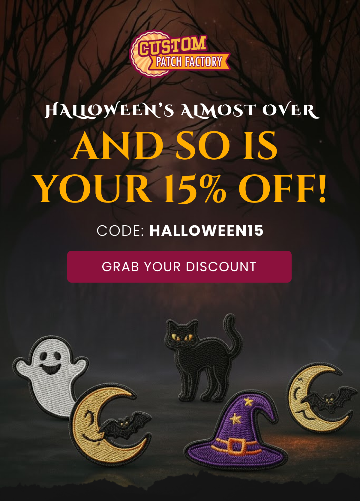 You've dodged ghosts, ignored goblins, but this deal? Can't haunt you forever. Use code HALLOWEEN15 before the clock strikes midnight and save 15% on custom patches, apparel, and more. After tonight—it's gone poof! | | | | |