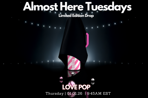 Happy Tuesday coldie!, Get excited, this Thursday's drop is ALMOST here! The Candy Hearts and The Love Pop are dropping this Thursday, 01.01.26! In the meantime, here's a sneak peek of what's coming... | | Limited Edition Release New Drops every Thursday at 9:45am EST Fastest Shipping | | What's Almost Here Tuesday? - Drop Name Reveal