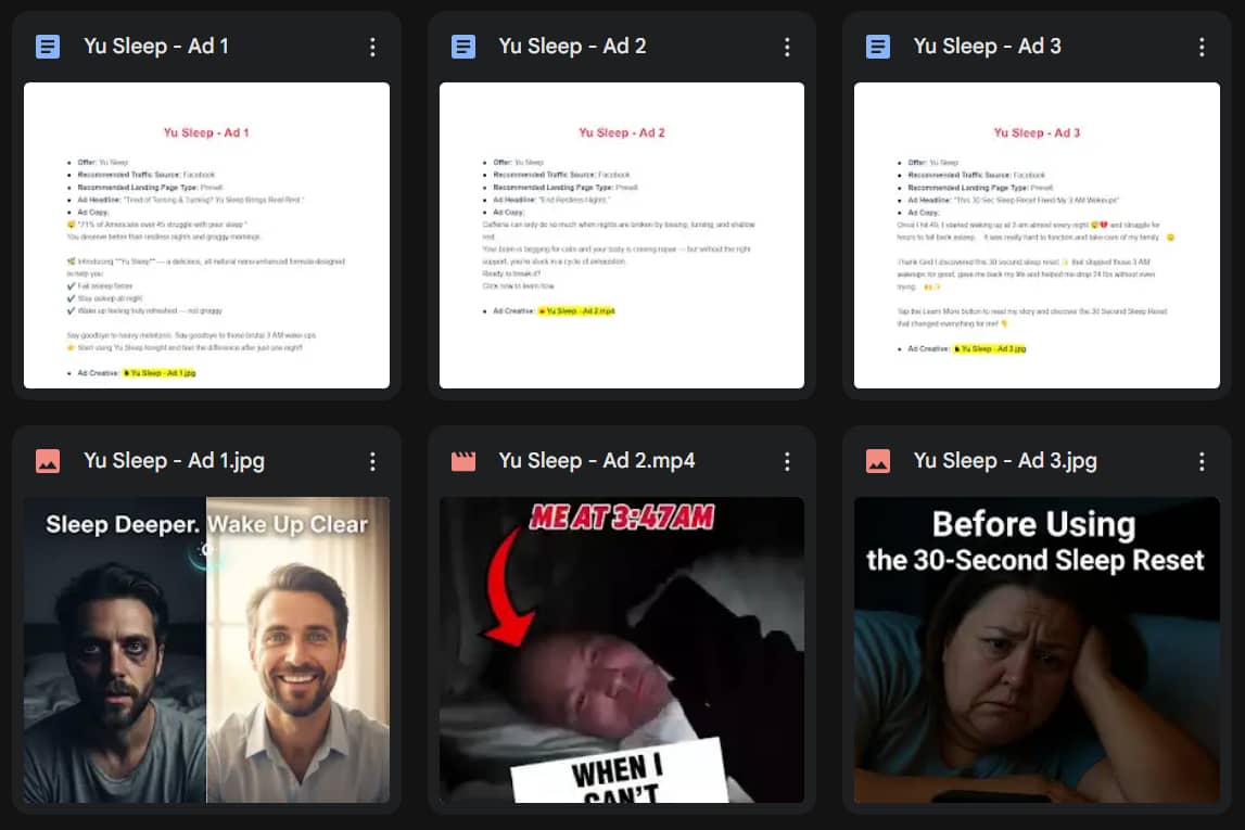 Why This Matters: For sleep offers like Yu Sleep, ads work best when they speak to familiar patterns, lying awake for hours, waking at 3 AM, dragging through the day, while presenting a realistic, non-hype path to more natural, continuous sleep. The goal is to give you a clear direction for your messaging, not word-for-word ads.