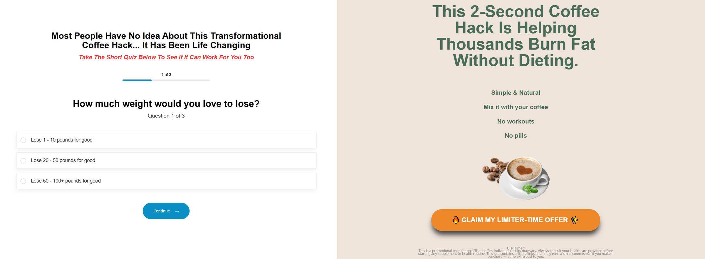Why This Matters: Coffee + weight loss appeals broadly on Facebook and YouTube, targeting routine coffee drinkers interested in natural metabolism boosts, fat loss, and sustained energy.
