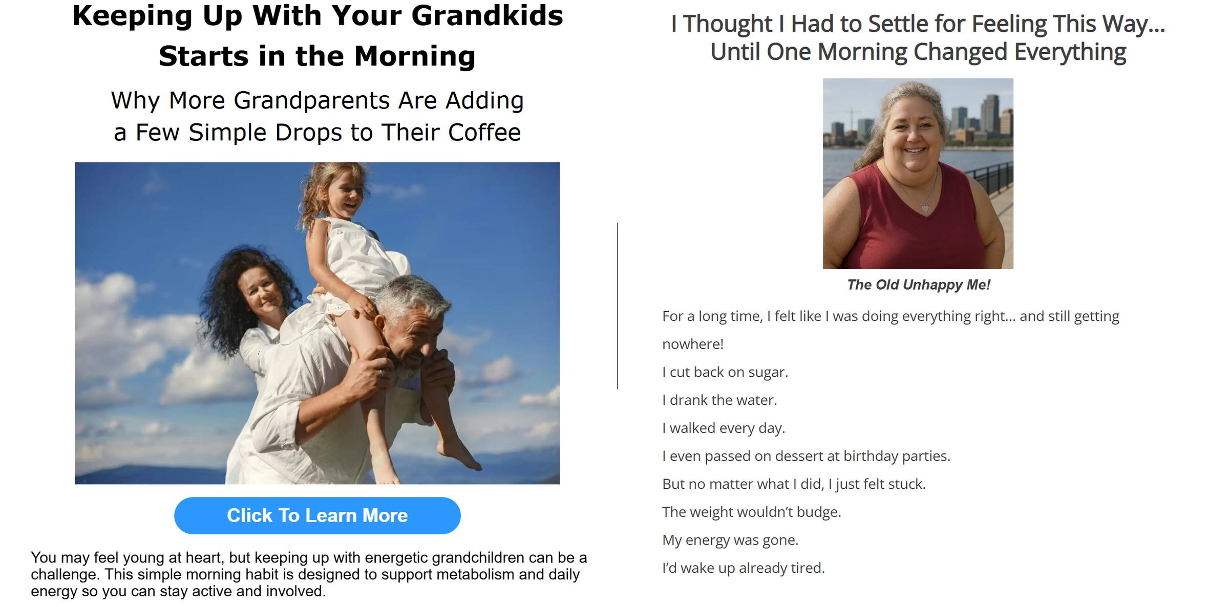 What You Get: Two main landing pages in your funnel: the first introduces the simple coffee hack for effortless metabolism support; the second deepens engagement with FAQs, benefits, and testimonials before sending to the Metabo Drops sales page on ClickBank.