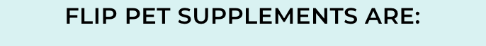Flip Pet Supplements are clean, human-grade formulas with no fillers, just targeted support for joints to ease aches and keep dogs moving, digestion to banish tummy troubles, and skin & coat to calm itch and reduce shedding. | | | | |