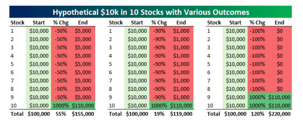 Here is a table showing the impact a 10-bagger can have on your portfolio.