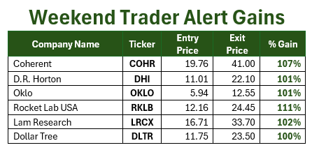 That's why it's worth looking at how Weekend Trader Alert actually closed out last year.
