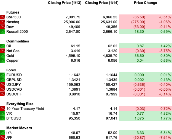 | | | | | | Growth still works, but it isn't free. | Today didn't challenge the growth narrative. | It priced its conditions. | Banks proved demand. | Tariffs proved pressure. | Tech proved valuation matters again. | Policy proved credibility now carries a premium. | The tape didn't break. | It charged a toll. | Markets are no longer trading outcomes as guaranteed. | They're trading the stability of the systems that produce them. | That keeps volatility contained, leadership narrow, and discipline high. | This is how late-cycle strength looks when constraints return. | If you understand that, you don't need to chase noise. | You just need to know where permission still exists, and where it doesn't. |