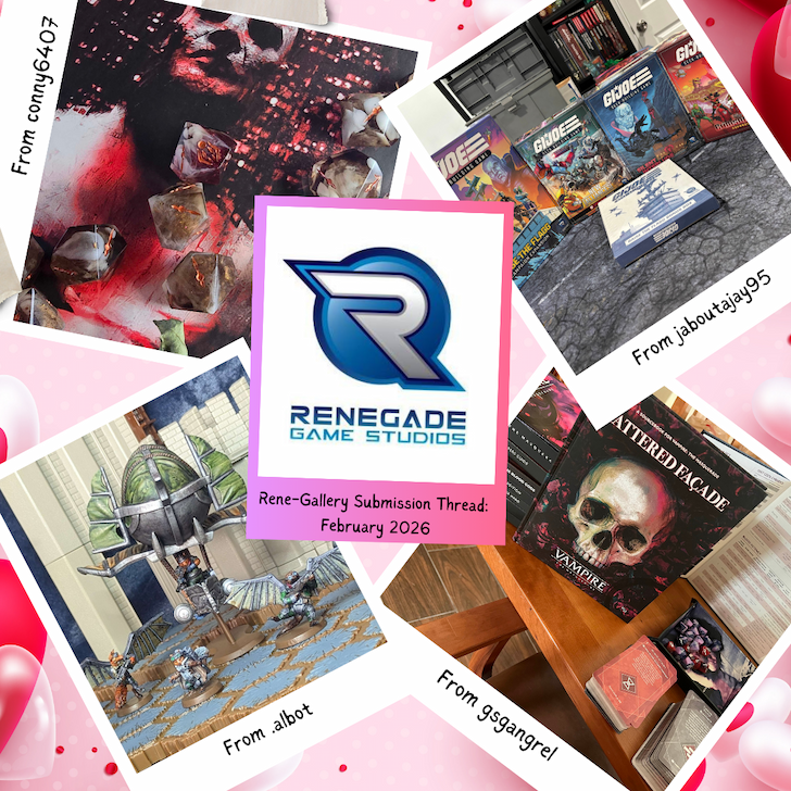 | | | | | | | | | Before I forget, our monthly Rene-Gallery thread is up! The theme this month is "Games You Love" and I will PERSONALLY give bonus points to board game date nights or Valentine's Day board gaming photos. I love getting to chat with you guys every week and I'm so hype for everything we've got coming (like Renegade Con 👀) Tip-tap-typing away, Rina | | | | |