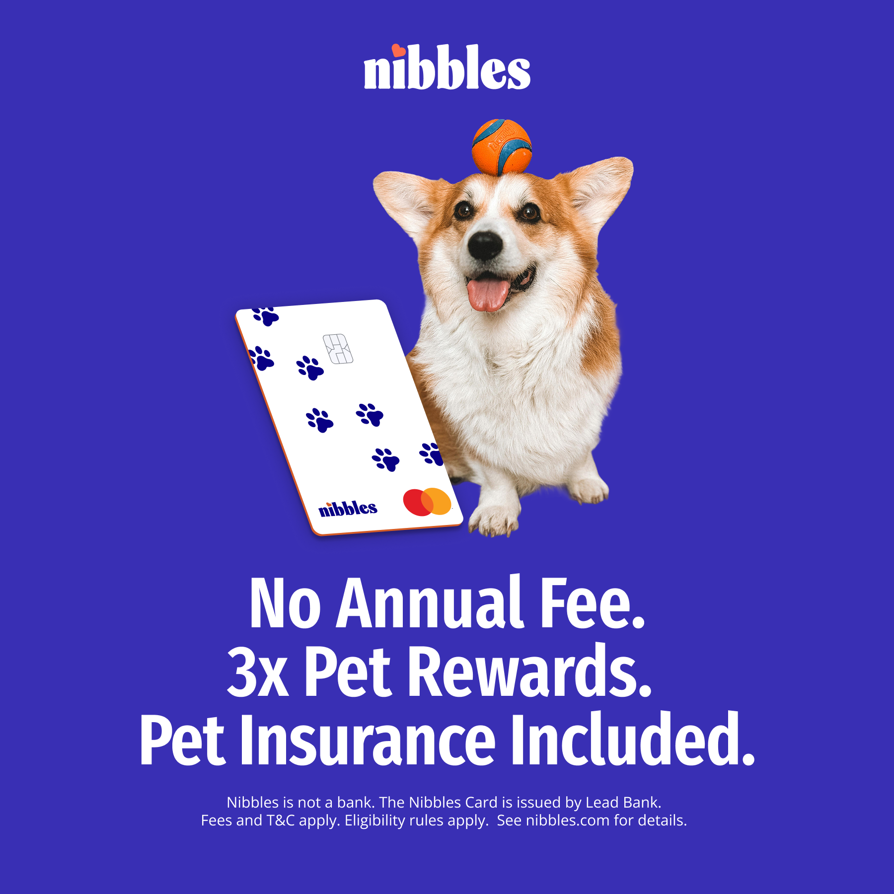 Pets Are Like Family, Protect Them with Nibbles | | 80% of pets will have a medical emergency in their lifetime and these emergencies can cost $10K+. With costs continuing to climb, many pet owners are wondering how they can afford a surgery in case of an emergency. Some pet owners have separate savings accounts ready to cover these extreme costs, but now there is an even better solution with the Nibbles Pet Rewards Credit Card. The card comes with complimentary pet insurance for one eligible pet, so your precious pet can be covered, and you get 3x rewards at the vet, at pet stores, and on pet services. Save hundreds annually on premiums alone and potentially thousands in case of an emergency. All this with the no annual fee Nibbles Pet Credit Card. | | | | |