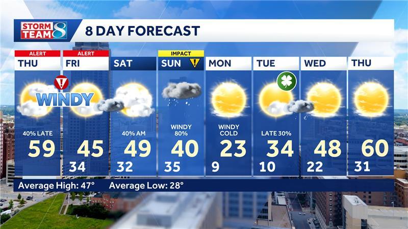 - Tomorrow: Partly to mostly cloudy. High 45F. Winds NW at 10 to 20 mph.